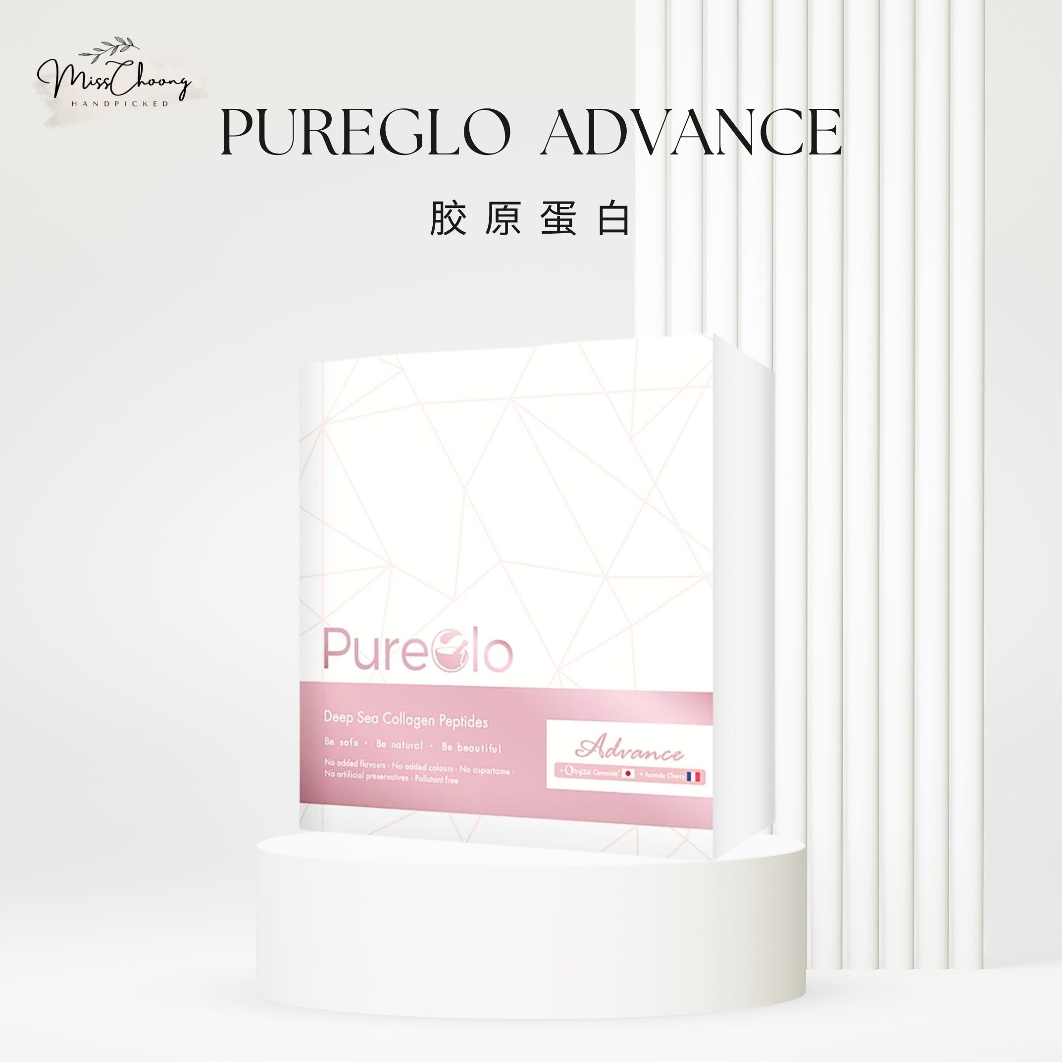 – Pureglo Advance的胶原蛋白是从深海鱼皮和鱼鳞中萃取的